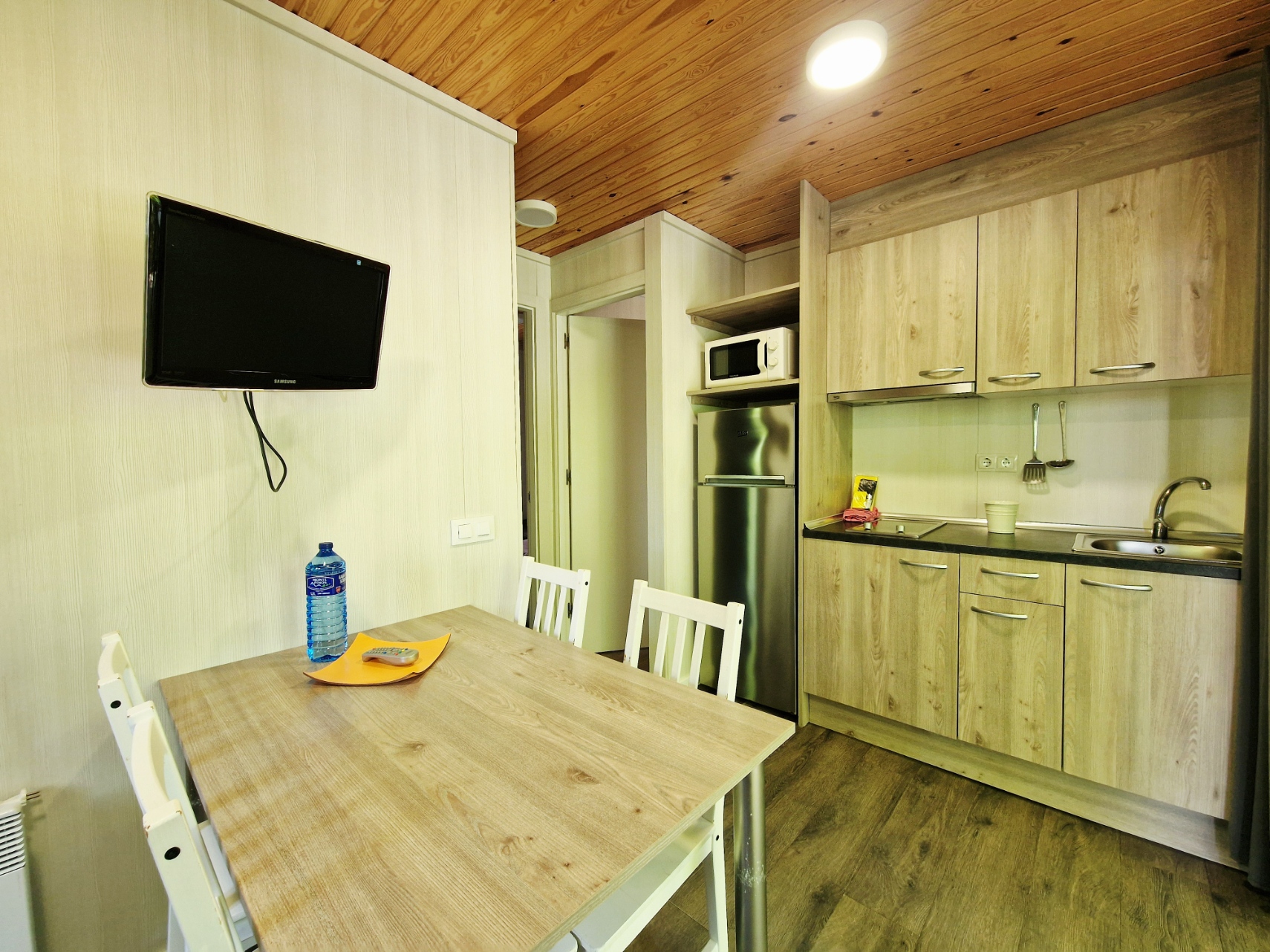 El «Bungalow Cantabria» es un moderno bungalow con capacidad para 4 personas, distribuido en dos habitaciones, ambas con 2 camas de 90cm. No disponemos de camas supletorias ni cunas, sí facilitamos barreras para las camas.